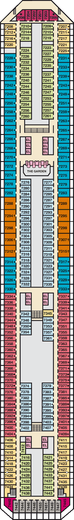 | Dekken: | Upper dek, Empress dek, Lido dek, Panorama dek | |
