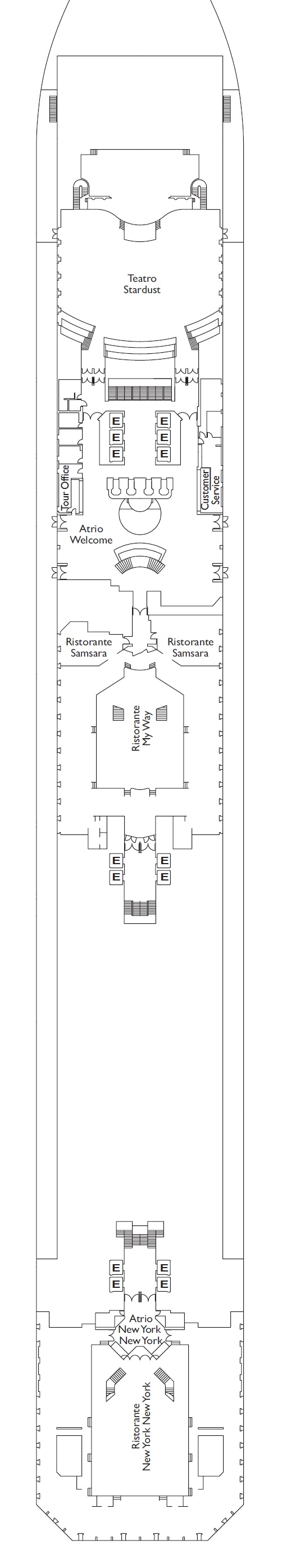 | Dekken: | Dek 9 Azzurro, Dek 7 Alhambra | |
