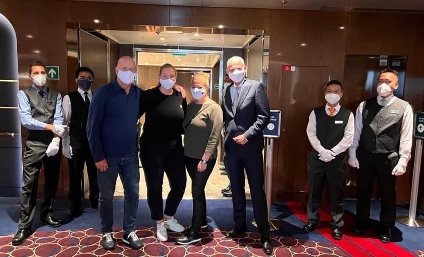 Een unieke ervaring was de vriendelijke en gelukkig ogende crew welke na 1,5 jaar pauze (Corona) zorg draagde voor een geweldige service aan boord. Een warme ontvangst en een oorverdovend applaus tijdens het afscheid bij de uitgang van het schip.En dat allemaal onder regie van vice president sales Europa Nico Bleichrodt (zie rechts op foto)